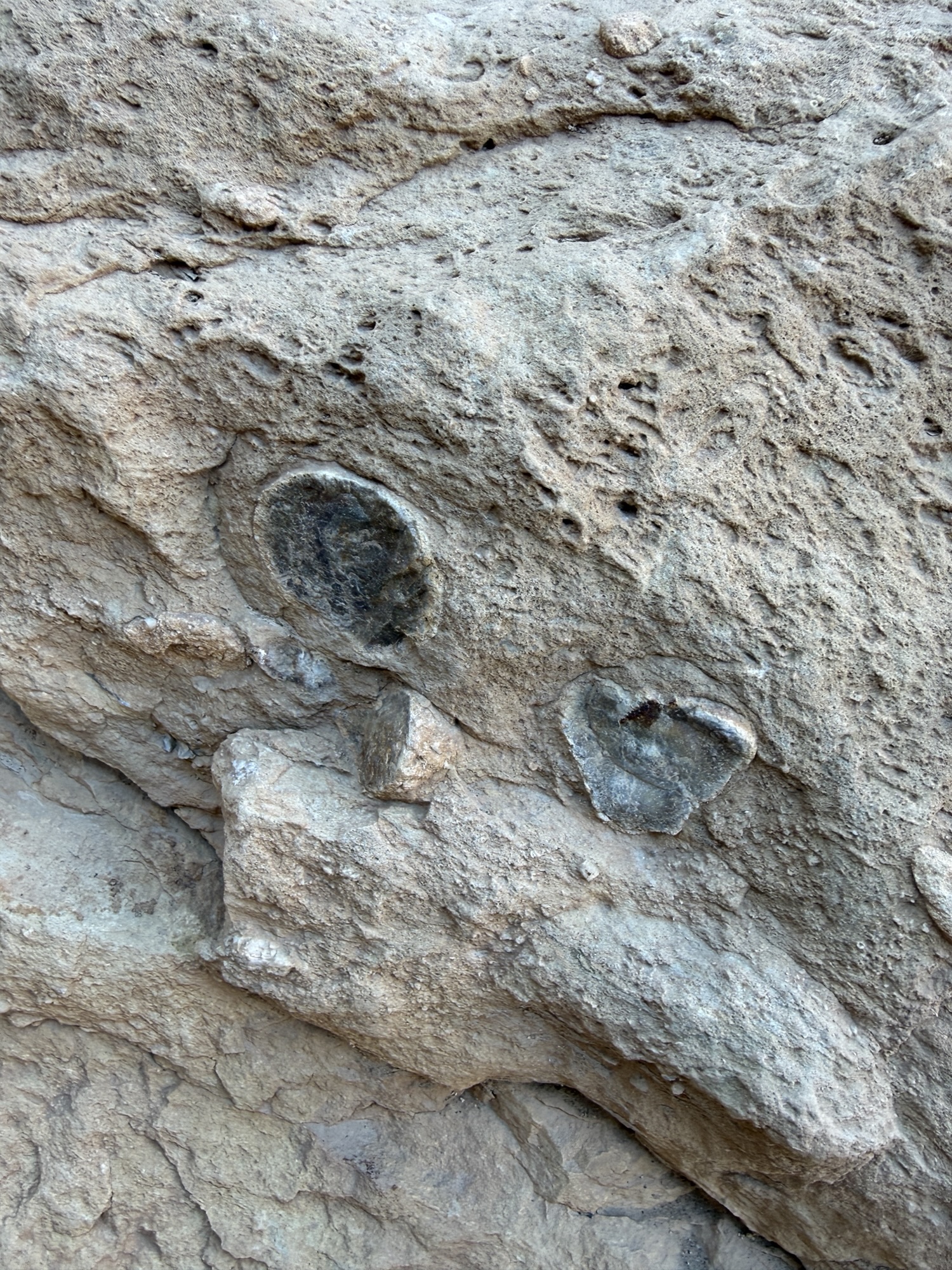 (海の底だったので、貝の化石があちこちにあります)